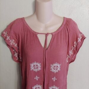 Francesca's Blue Rain Blush Pink Embroidered Dress Size Women's Medium