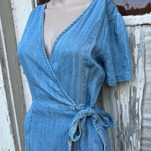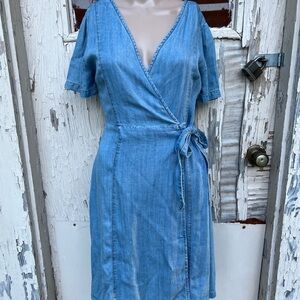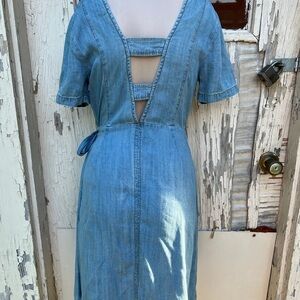 Francesca’s Blue Rain Chambray Denim Summer Beachy Wrap Dress Ballet Core