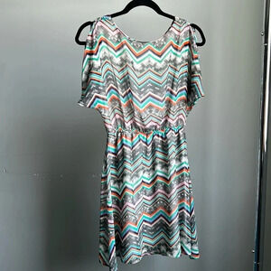 Keywords: Colorful Dress, Colorful, Lightweight Dress, Francesca's, Francesca's Dress, Patterned Dress, Open Back Dress, Mini Dress