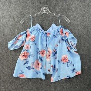 Francesca's Blue Rain Floral Off the Shoulder Light Blue Boho Top Size XS EUC