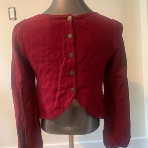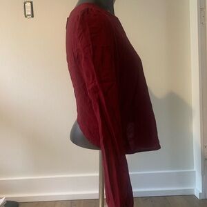 Beautiful long sleeve top, show off your lower back with the elegant design. Worn once. Purchased at Francesca’s. The color looks burgundy to me.