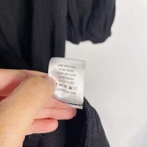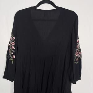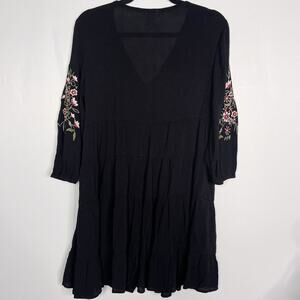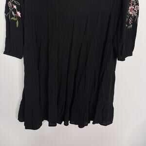 Francescas Blue Rain Medium Black Floral Embroidered V Neck Tiered Dress Crepe