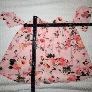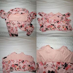 Francesca's Blue Rain Off The Shoulder Pink Floral Open Back Blouse Top Coquette