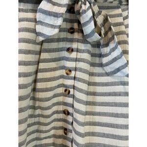 Francesca's Blue Rain Striped Button-Front Skirt with Tie Waist Small