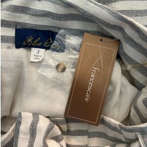 Keywords: women's skirt, striped skirt, button-front skirt, tie waist, summer fashion, casual wear, cotton skirt, pleated skirt, high-waisted skirt, Francesca's, Blue Rain