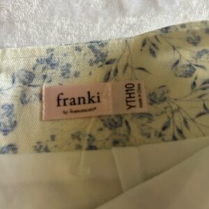 This elegant mini pencil skirt from Francesca's Collections showcases a beautiful blue and ivory color scheme, ideal for casual outings or dressing up. Its sleek, fitted design offers a flattering silhouette, while the lightweight fabric ensures comfort and style. This skirt is fully lined and has a scalloped hem.