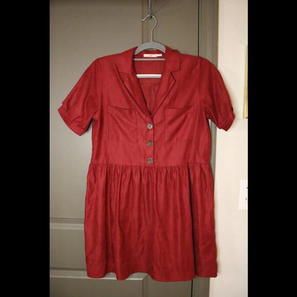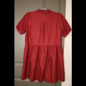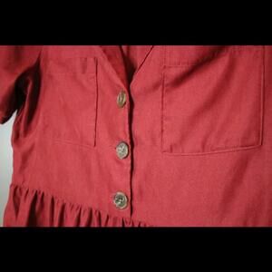 This chic and versatile Francesca’s dress is perfect for both casual and dressy occasions! Made from a soft, lightweight fabric in a rich rust-red shade, it features a collared neckline, button-front bodice, and a flowy gathered skirt for a flattering silhouette. The short cuffed sleeves with button detail add a touch of sophistication, making it easy to style up or down.
