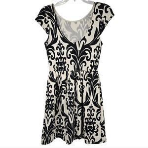 Francesca's Buttons Damask Jaquard Knit Scuba Dress Sleeveless Fit & Flare Mini