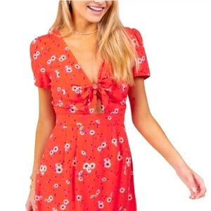 Francescas Carmena Bow Front Floral Mini Dress Red - S