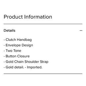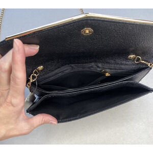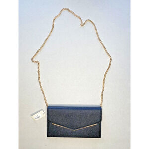 Francescas Black & Gold Removeable Straps Henrietta Envelope Clutch. New with tags. Gold chain strap is removeable. 22.5" strap drop.