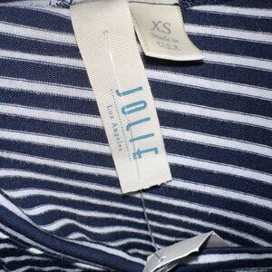 Francesca's Cold Shoulder Heart Elbow Tee Shirt Navy Blue White Stripes XS Jolie