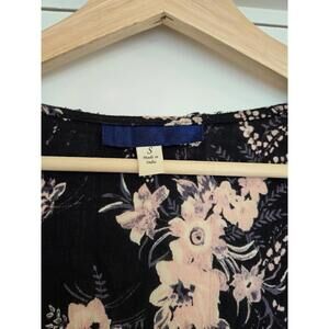 Size small but honestly fit any size. Has been loved a lot. No holes but seems are frayed a bit at the top which is shown in the last photos