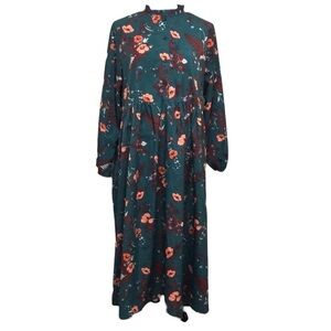 Francesca’s Collection Maxi Dress Size 1X Forest Green Orange Poppy Floral Print