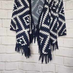 Francesca's Collection Womens Navy & White Aztec Fringe Poncho Cardigan M/L