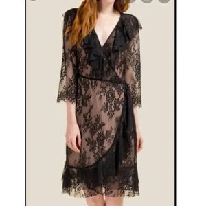 Francesca’s Collections Black Kaylee Lace Wrap Dress Size XXS NWT