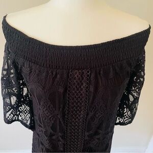 Francesca's Collections Black Off-Shoulder Lace Mini Dress Size M