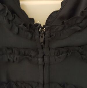 Stylish black top with elegant ruffle details. Perfect for any occasion.