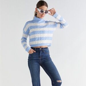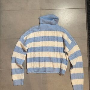 Francesca's Collections Blue and Cream Cowl Neck Sweater