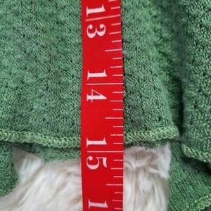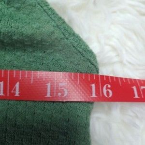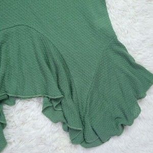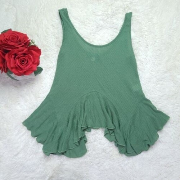 This Francesca's Collections tank top is a wardrobe must-have for any fashion-forward woman. The asymmetrical hemline and loose fit create a relaxed and effortless look, perfect for any casual occasion. The scoop neckline and sleeveless design make it a great option for warmer weather, while the knit polyester and rayon fabric ensure a comfortable fit. The solid green color is versatile and easy to style, made in the US and quality made. This pre-owned item is in great condition and ready to be loved by its new owner.