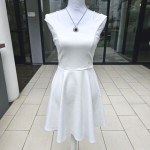 Francesca’s Collections Ivory Off-Shoulder Dress–Knit Fit & Flare Cocktail Ready