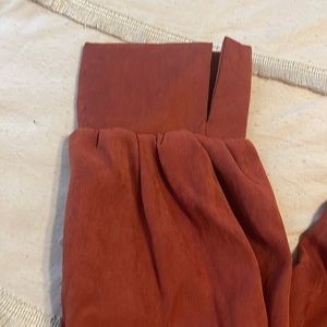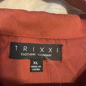 Chic rust dress with button-up front. Long sleeves and relaxed fit. Perfect for casual outings.