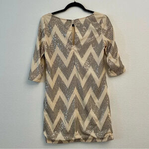 Francesca’s Collections Sequence Silver & Cream Dress Mid Length Sleeve Size S