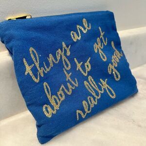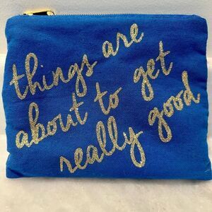 Francesca’s Collections Things Are About To Get Really Good Glittered Canvas Clutch Cosmetic Bag Blue 9"x 7.5"