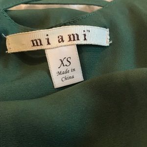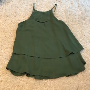 Pretty green layered top. Size: XS. Cute cross detailing on the back. Small stain on front as seen in last photo.