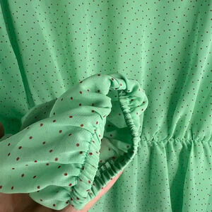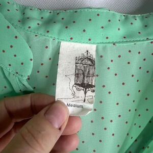 Francescas Collections Vneck Sheer Peplum Waist Polka Dot Blouse Sz MD