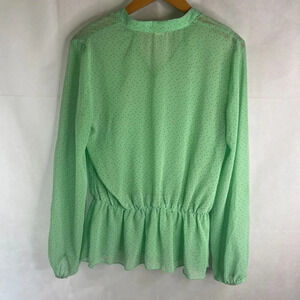 Francescas Collections Vneck Sheer Peplum Waist Polka Dot Blouse Sz MD‎