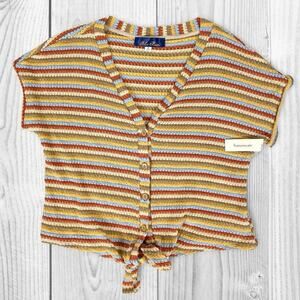 Francesca’s Crochet Cardigan M Multi Stripe Cropped Boho Sweater NWT