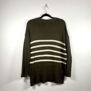 Francesca’s Dark Olive Striped Side Slit Crewneck Sweater