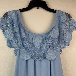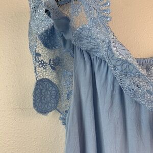 From Franchesca’s boutique, Dina be: off /on shoulder Tiffany blue lace & linen-feel rayon mini sundress fully lined, sleeveless. In excellent condition!