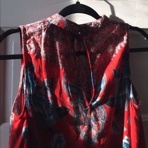 Orange dress with blue pattern and flowers. button on back of neck. true to size.