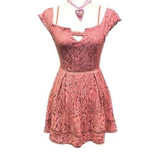 Francesca’s Dusty Rose Lace Off Shoulder Dress