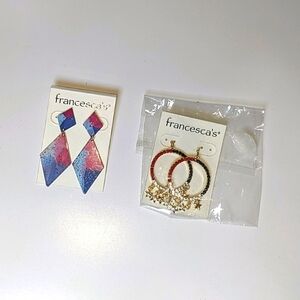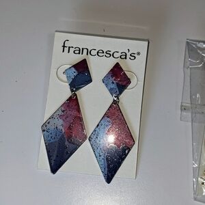 Picturing the Colorful Dangle Earrings Set in Pink, Blue, Gold, Red by Francesca's.