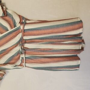 Francesca's Fredah Stripe Front Back Tie Short Sleeve Elastic Waist Boho Romper