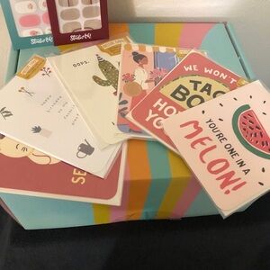 Contains a Take it Easy 17 oz stainless steel tumbler, 7.5 oz Endless Summer Scented Candle, two sets of Studio Oh Nail Wrap Kits, 6 deluxe cards, two car air fresheners, and an empty fillable hand sanitizer bottle in case with clip ring. All this packed into this beautiful gift box and shipped to your door! Pamper yourself or makes a great gift!