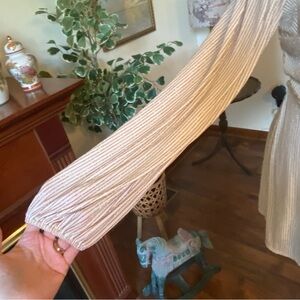 Shimmer and shine in this gorgeous Francesca’s wrap-style mini dress. Crafted in a cream base with gold glitter stripes, this piece features a surplice V-neckline, adjustable tie waist, long blouson sleeves with elastic cuffs, and a soft lining for comfort. Perfect for holiday parties, date nights, or special events.
