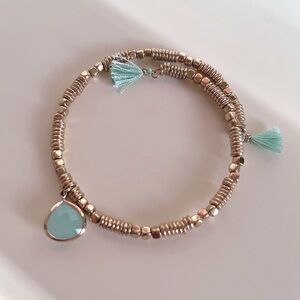 Francesca’s Gold Metal Coil Beaded Bracelet Turquoise Charms Tassel