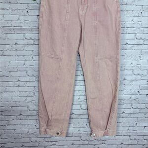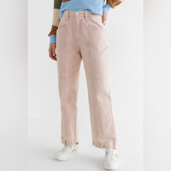 Previously loved, no holes or stains. Please note the wash is whiskered and not a solid pink. Adjustable ankle straps.