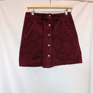 Francesca’s Harper Heritage Burgundy Corduroy Button Front Mini Skirt – Size Sma