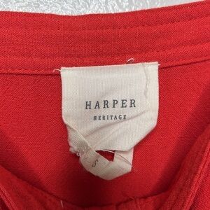 Francesca's Harper Heritage Red Button Down Crop Linen Top Sz S