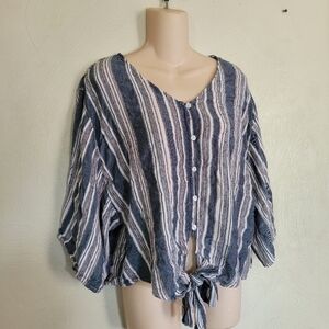 Francesca's Harper Heritage Vertical Stripe Button Down Front Tie Top Size XL