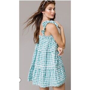 Francesca’s Janice Green and White Gingham Tiered Mini Dress Size XL NWOT