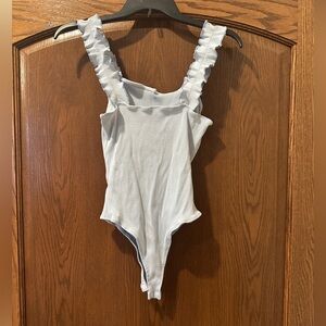Francesca’s Joanna Ruffle Strap Bodysuit, light blue