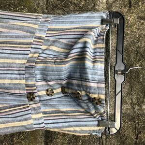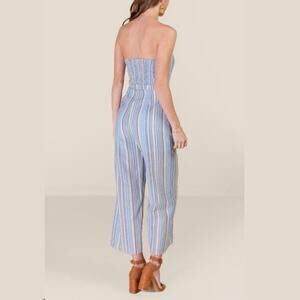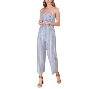 Francescas Jumpsuit Strapless Striped Button Front Blue Straight Crop Leg Small