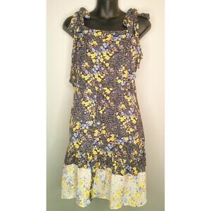 Francesca's Jun + Ivy Two toned Boho Floral Summer Mini Dress Ruffle Hem Large