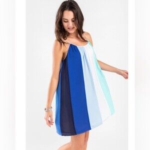 Francesca’s Jun & Ivy shades of blue color block shift dress size small NWOT