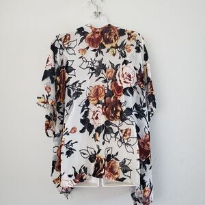 Francesca's women's kimono top - floral, sheer, velvet burnout, open front, side slits and lightweight. Multicolor